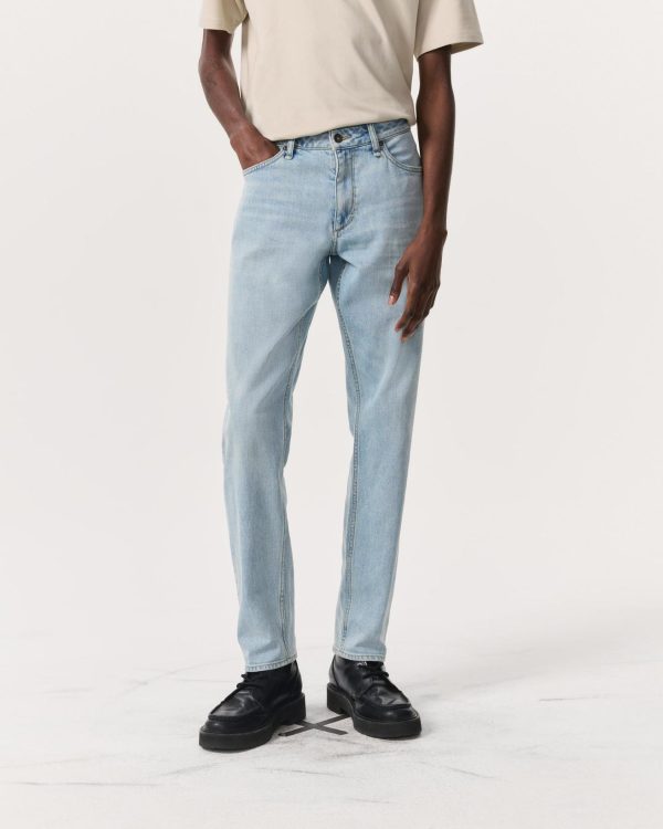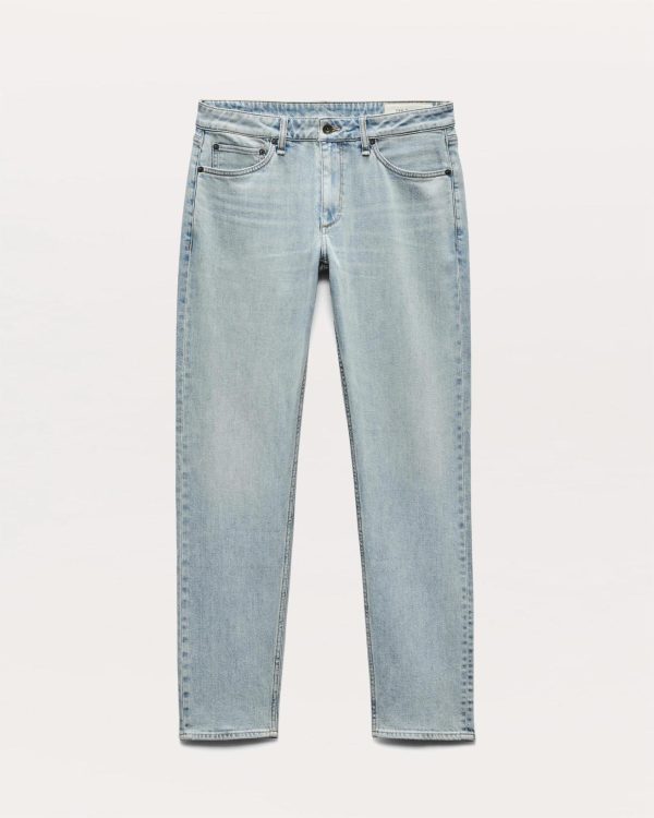Authentic Stretch Denim in Icarus, a light indigo wash.