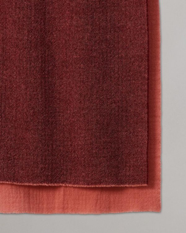 Equally stylish and warm, this color block scarf is knit in Italy from ultra-soft virgin wool and finished with a raw edge.