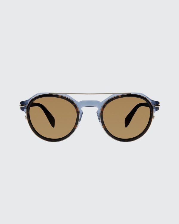 A round eye silhouette with an acetate frame and 100% UV protection.