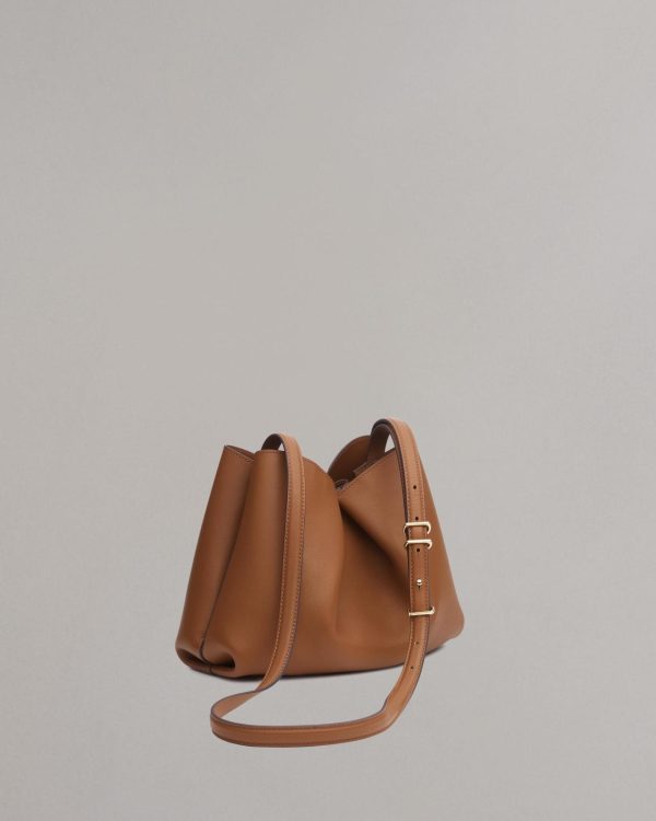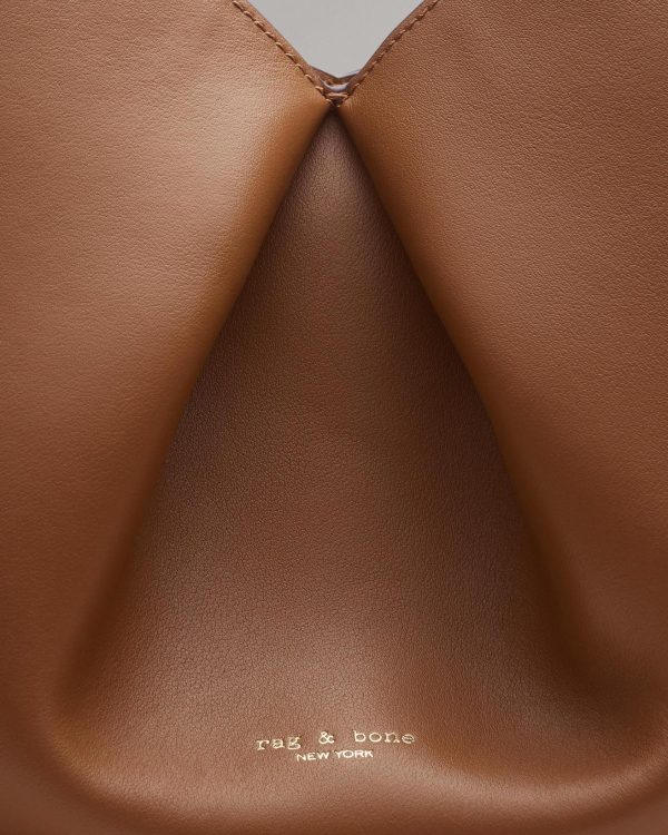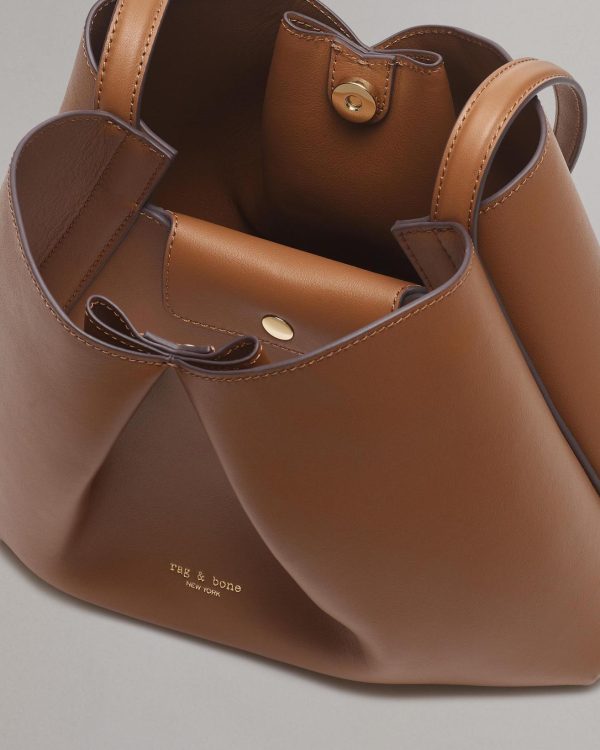 Two large sections separated by a leather divider, flap pocket with a snapped closure