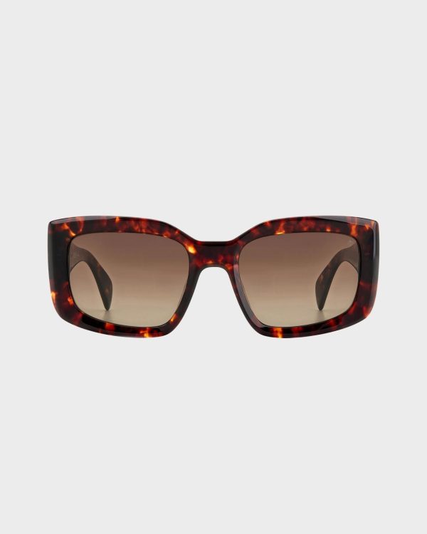 A rectangular silhouette with an acetate frame and 100% UV protection.